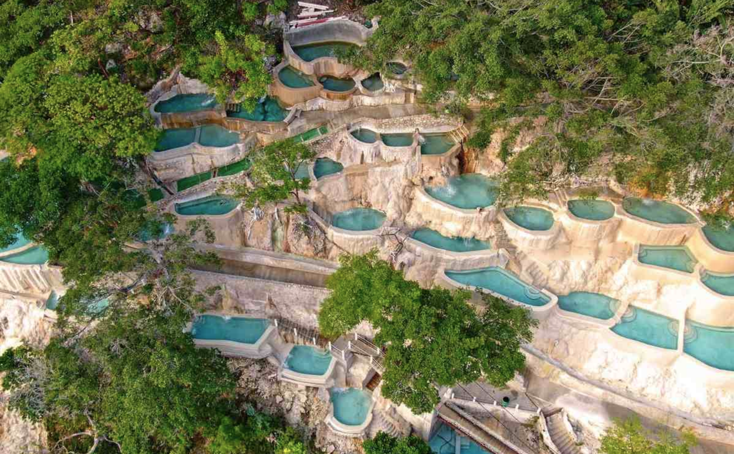 - Pozas termales construidas en terrazas naturales