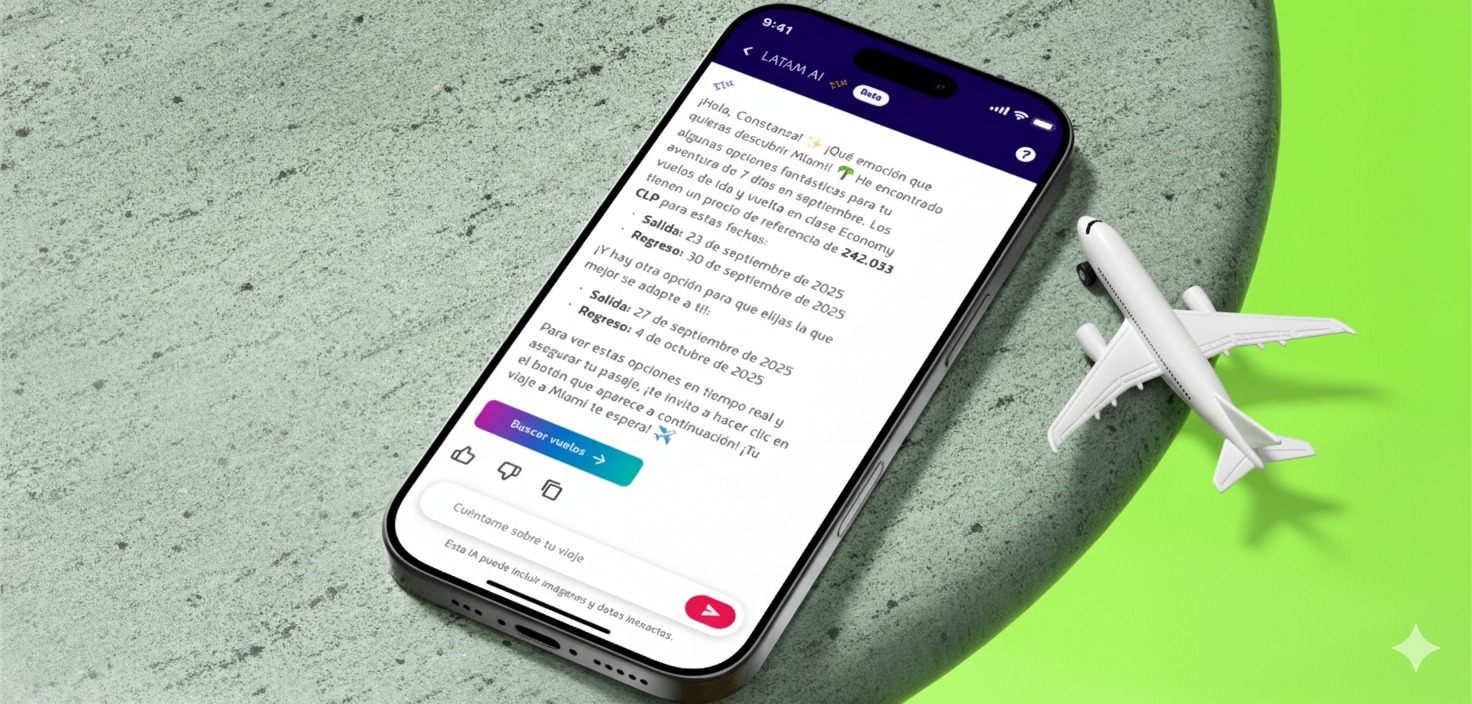 El asistente digital es un aliado clave para el viajero. El sistema responde a preguntas prácticas, como «¿Cuál es la fecha más barata para volar a Miami en enero?» o «¿Qué actividades puedo hacer en Cancún?». Además, considera el historial de vuelos del usuario. Genera cotizaciones con millas acumuladas y ofrece recomendaciones de actividades en el destino elegido. Lima, Santiago y Río de Janeiro son los destinos más consultados hasta ahora.